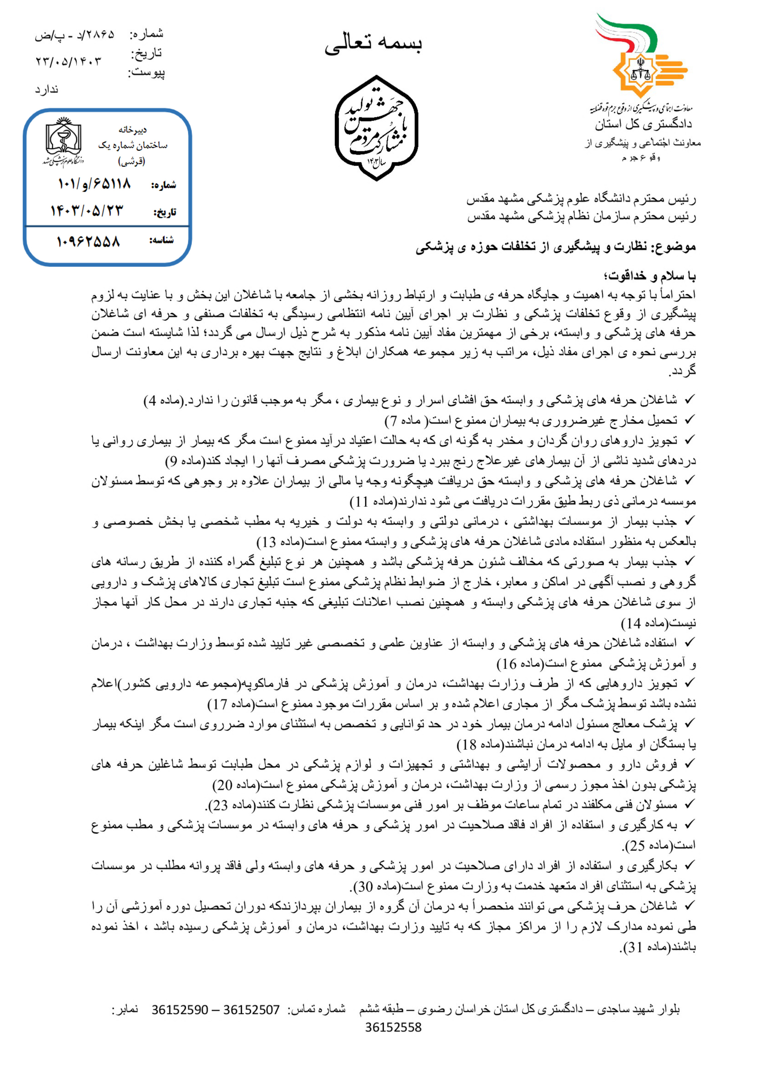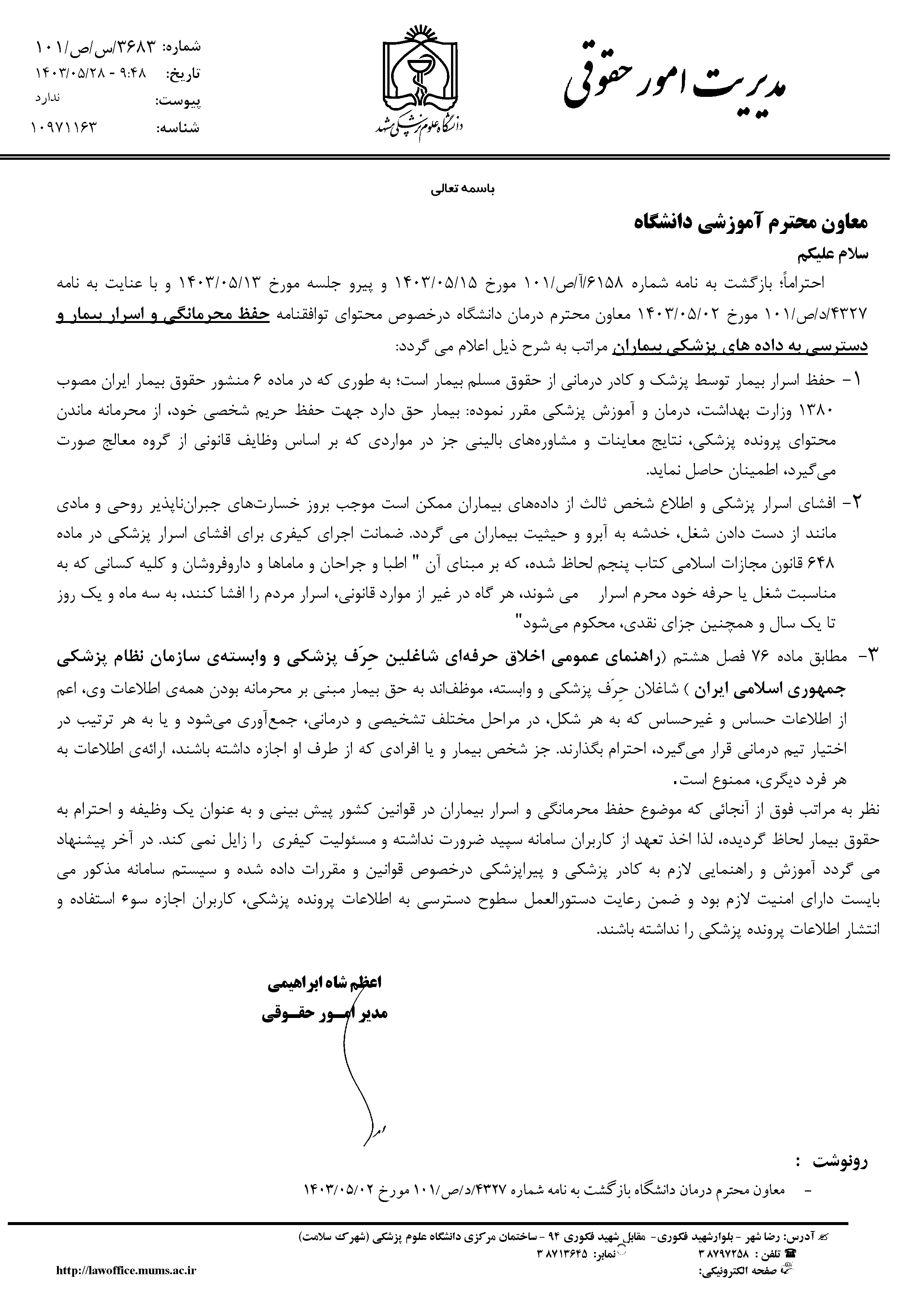 دستورالعمل های شورای عالی اخلاق پزشکی کشور:
